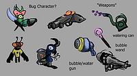 I was tasked with making concepts for the weapons, based on ideas for different tools the player could use against enemies. (Above) Concept art for water/bubble guns and watering cans. For the guns, I...